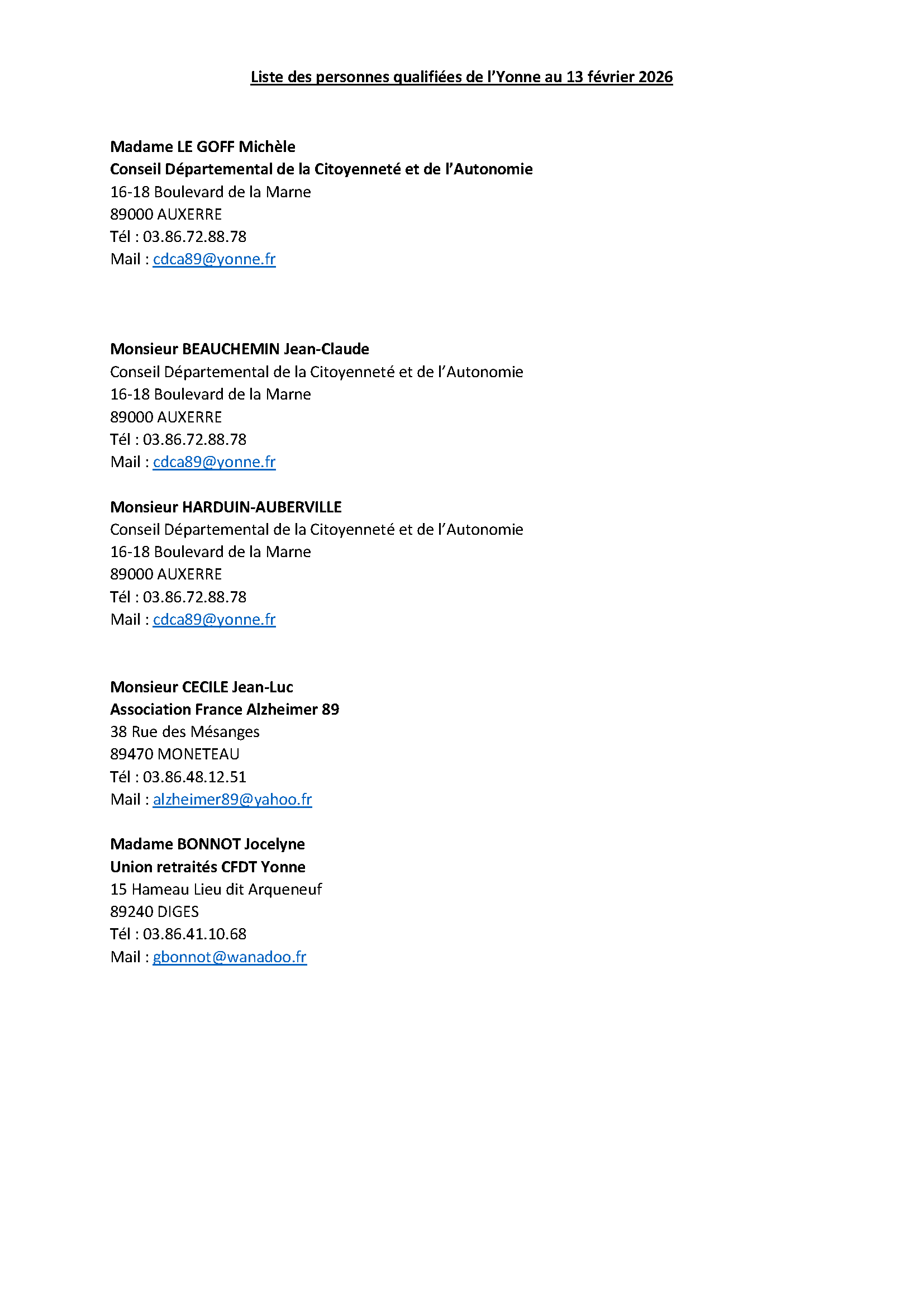 Face à un différend ou un simple questionnement ne restez pas seul, appuyez-vous sur une personne qualifiée dont vous trouverez la liste ci-après pour le département de l’Yonne.